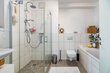 The bathroom with underfloor heating has both a separate level-access shower and a bathtub, a WC and a washbasin. There is additionally a separate toilet in the apartment. Towels are provided. The washing machine and dryer are located in a separate room.