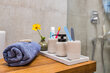El apartamento dispone de un amplio salón con un gran sofá y TV de pantalla plana con conexión por cable. El comedor contiguo está conectado con el salón a través de varias aberturas y está decorado con bonitos detalles. Hay una mesa de comedor con capacidad para 4 personas. Desde la nueva cocina se accede al balcón, que da al frondoso patio trasero, con vistas a la torre de televisión. La cocina está totalmente equipada con vitrocerámica (4 zonas), campana extractora, lavavajillas, horno, microondas y frigorífico/congelador. Hay cafetera, tostadora y hervidor de agua.